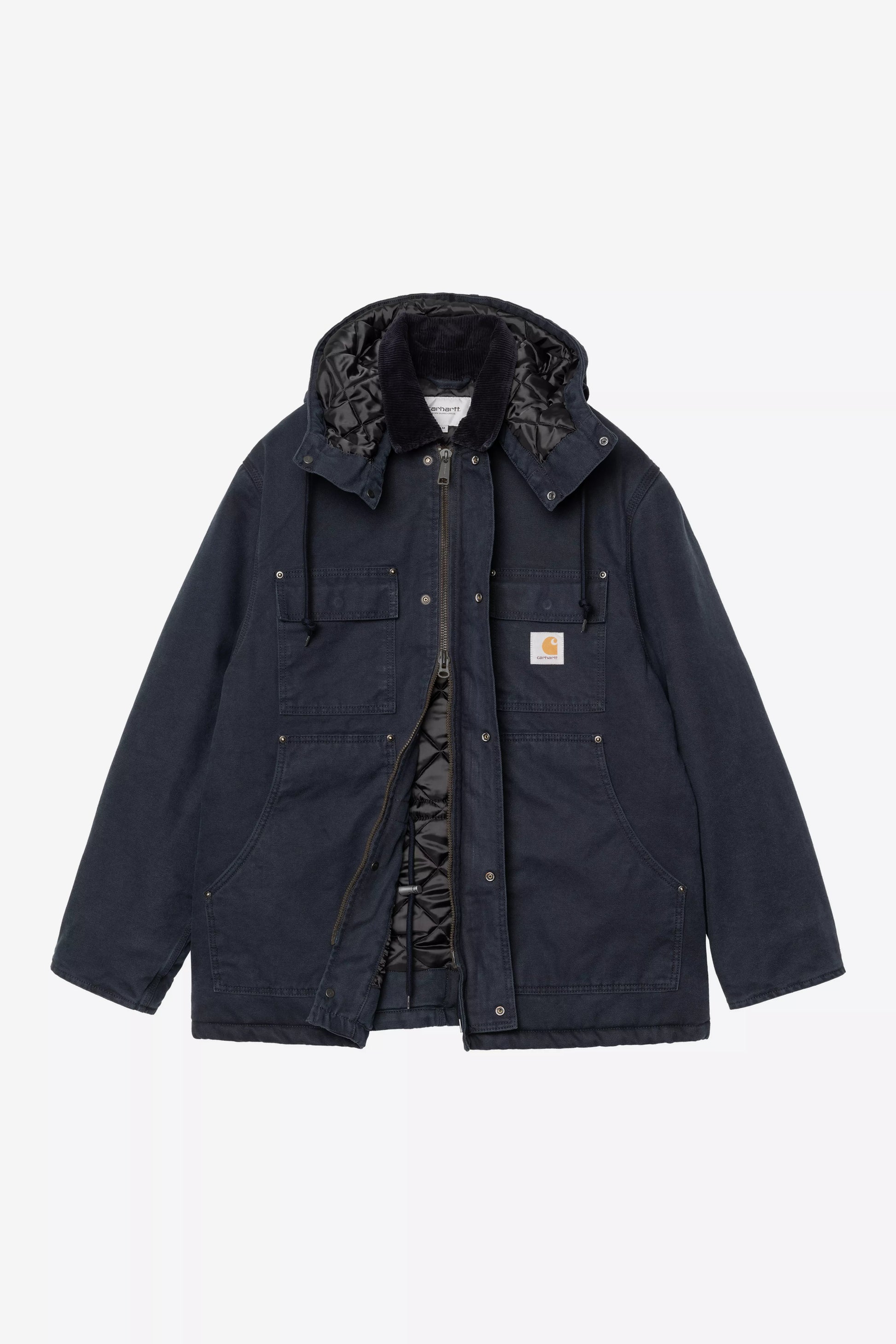 La Ambel Coat è realizzata in pesante tela di cotone con fodera trapuntata a rombi. La giacca presenta cappuccio rimovibile e colletto in velluto. La tripla impuntura, l’impuntura a travetta e i rivetti nei punti di maggior usura garantiscono maggior resistenza. La giacca è anche dotata di due tasche sul petto e di due tasche laterali inferiori. Rifinisce il modello un’etichetta quadrata in tessuto.