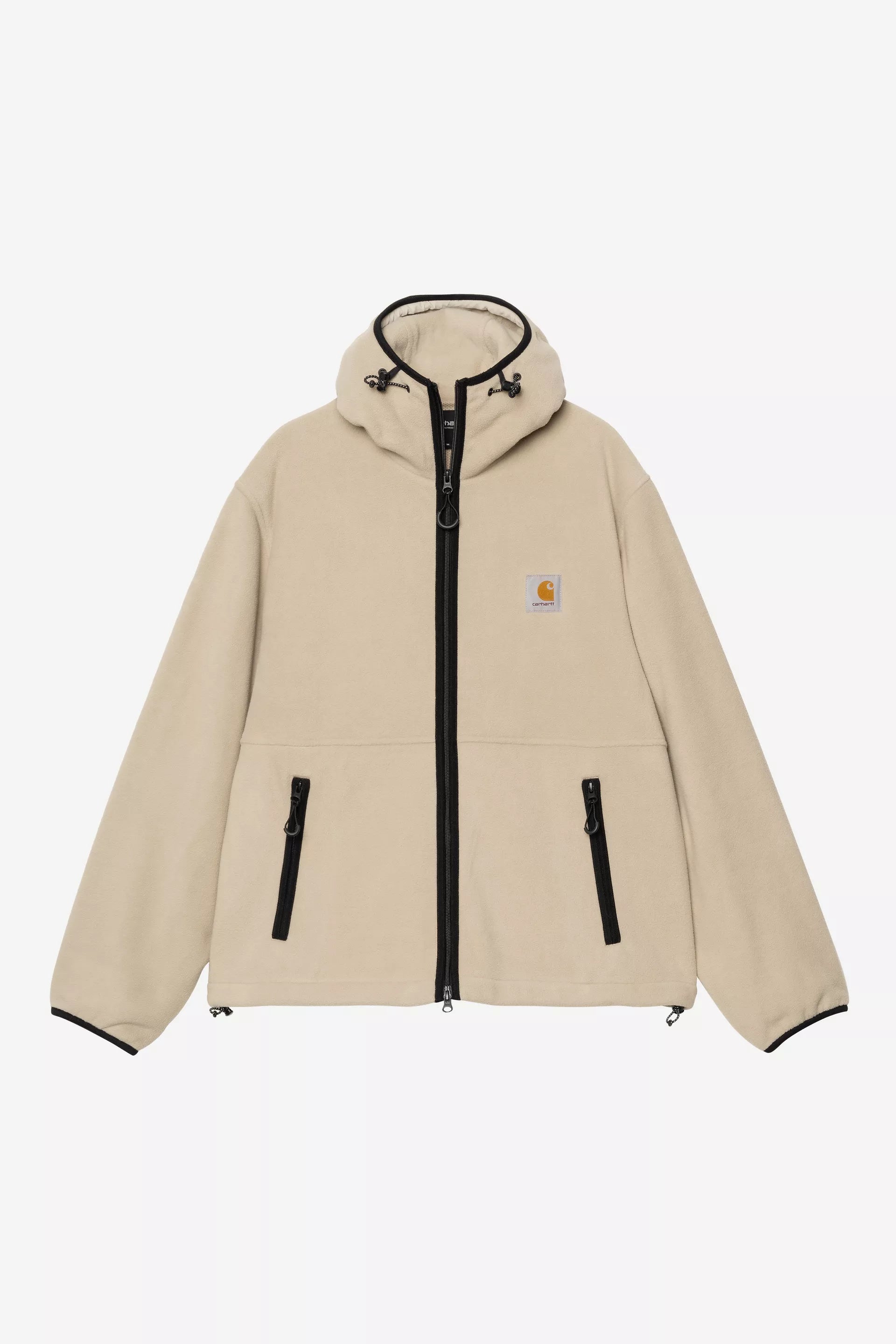 Il Blevin Liner è realizzato in pile di poliestere di peso medio con fodera in rete. Il capo presenta anche un cappuccio regolabile e un bordo inferiore elasticizzato. Un'etichetta quadrata riflettente completa il design.
