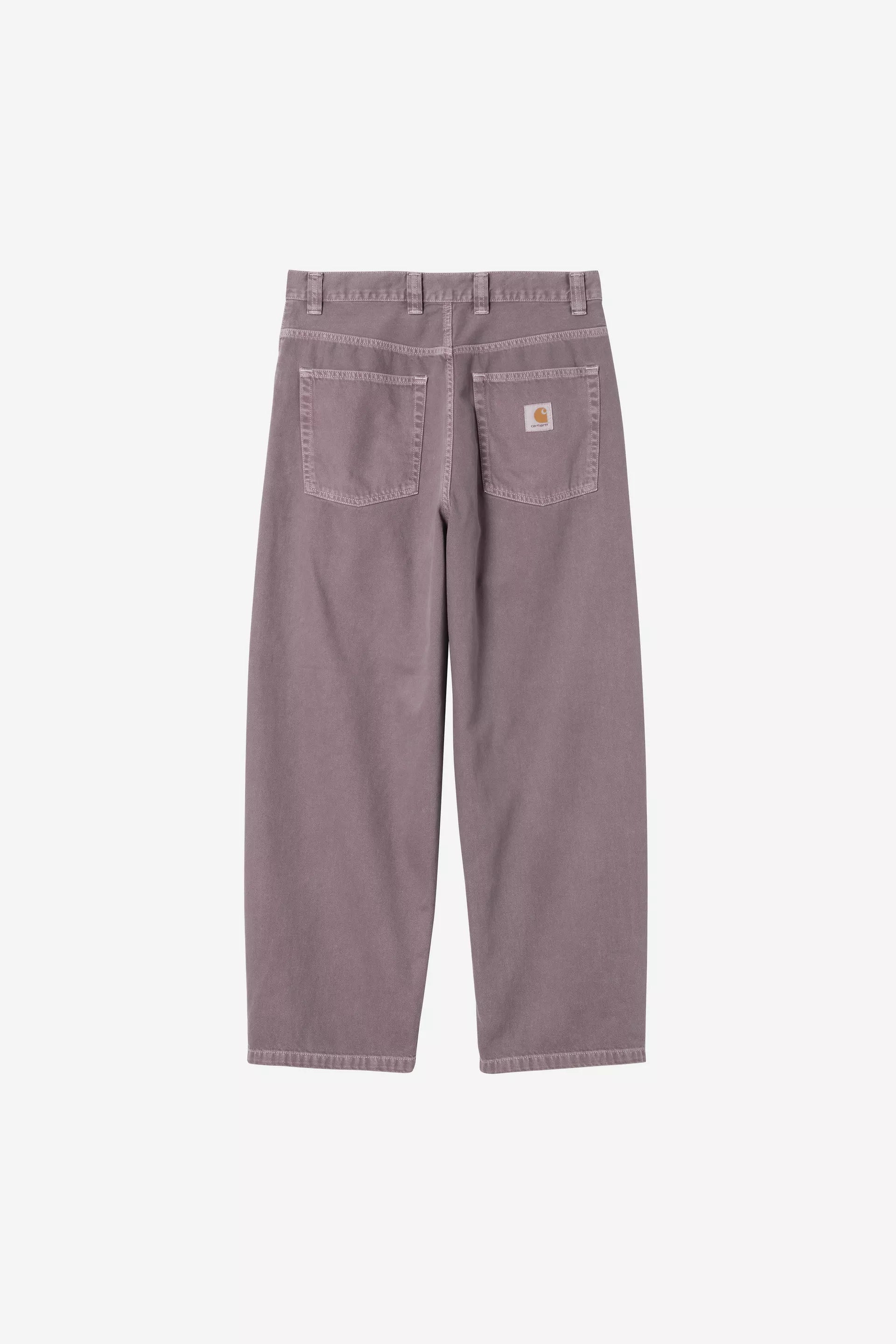 I Brandon Pant sono un modello a cinque tasche realizzato in pesante twill di cotone sottoposto a lavaggio con pietre abrasive per una maggior morbidezza, un aspetto vissuto e una patina particolare. I pantaloni presentano gamba ampia e dritta e cavallo basso. I pantaloni sono inoltre impreziositi da una delicata impuntura a travetta a contrasto nei punti di maggior usura, che aggiunge ulteriore robustezza. La parte posteriore è impreziosita da un’etichetta quadrata in tessuto.