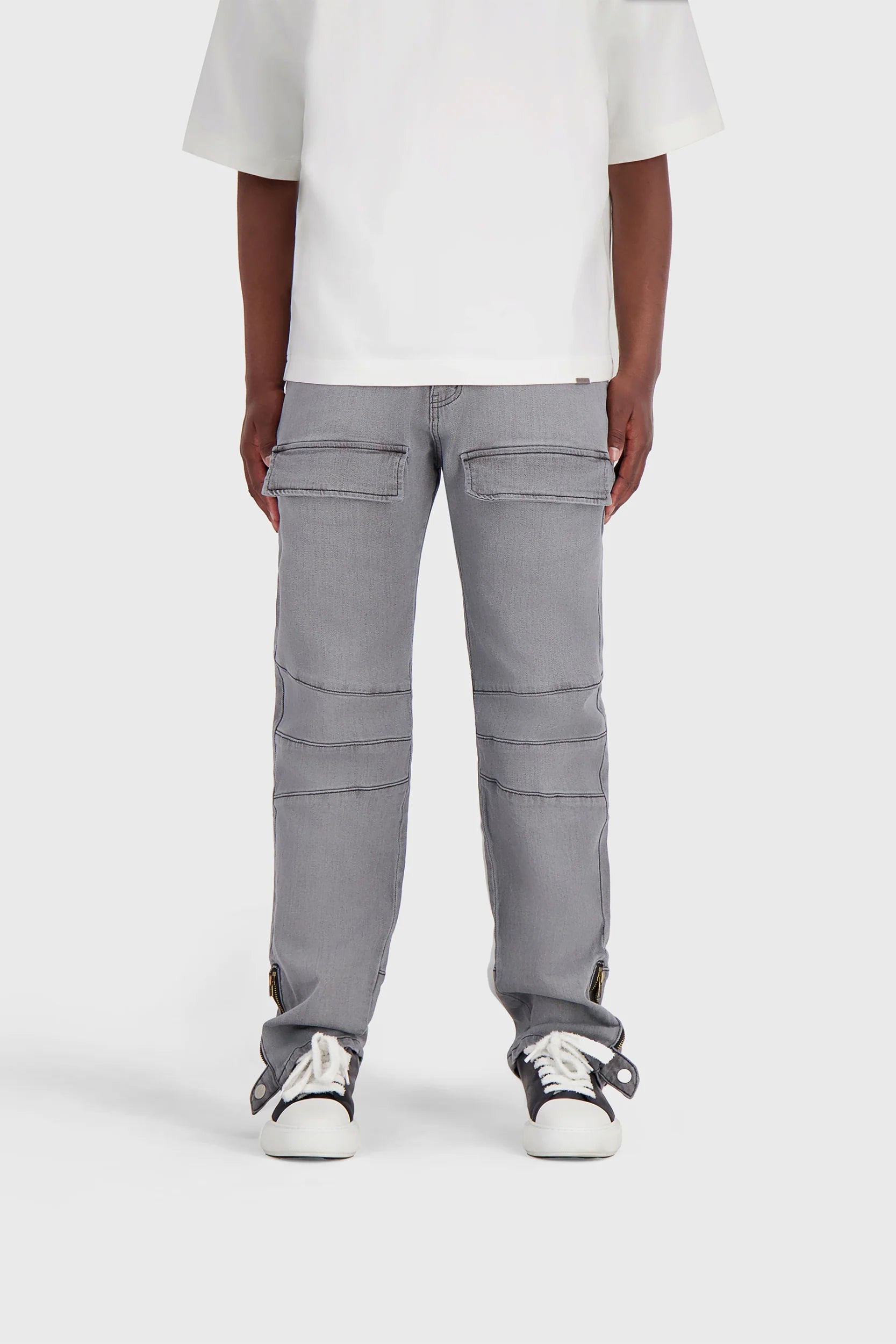 I jeans Delara ridefiniscono lo streetwear quotidiano con un design puro e intenzionale. Realizzati in un misto 98% cotone e 2% elastan, questi capi essenziali grigio slavato offrono un equilibrio tra comfort ed elasticità precisa. Le cuciture distintive creano una struttura sottile, mentre le tasche con patta sulla parte anteriore della coscia e gli spacchi con zip sul bordo della caviglia suggeriscono un tocco industriale.