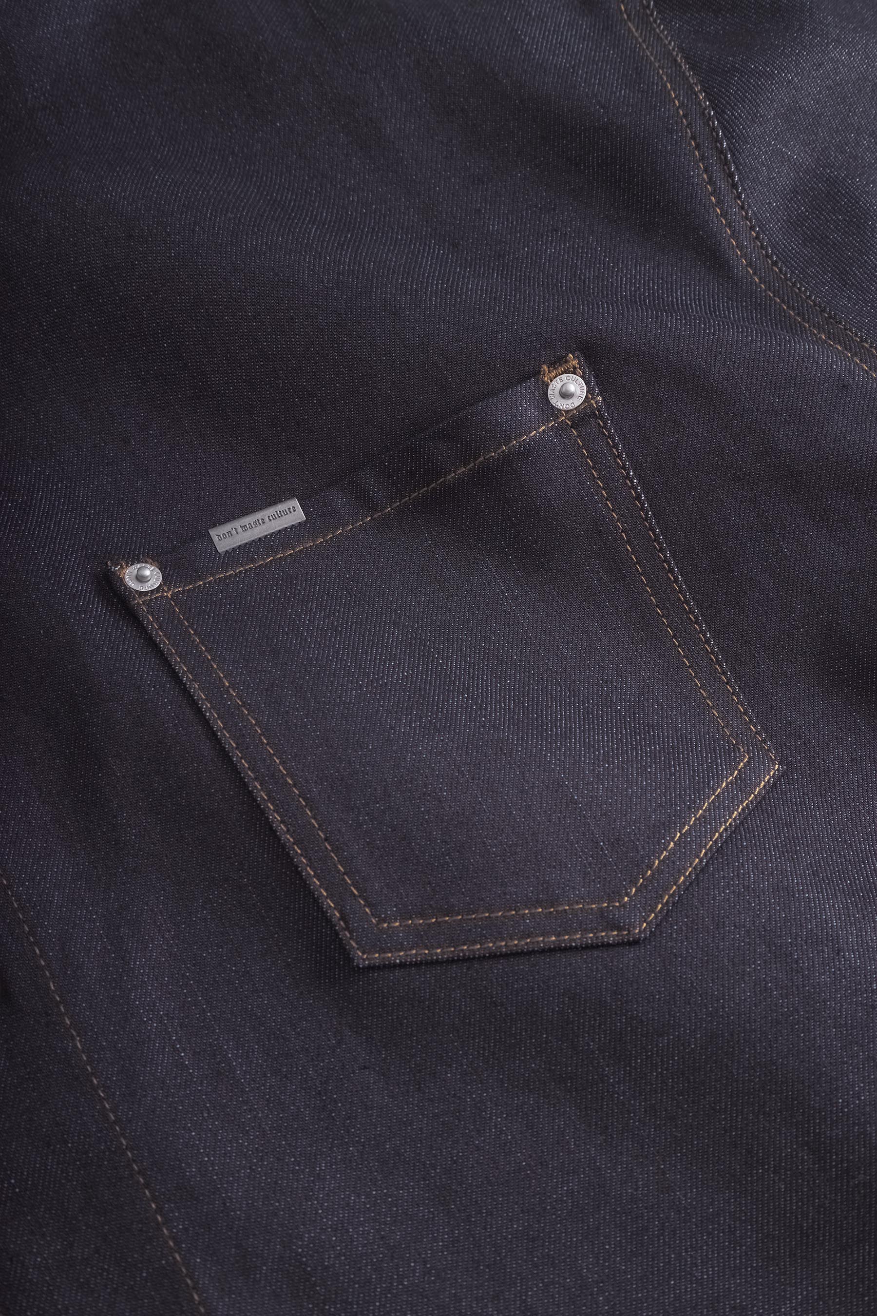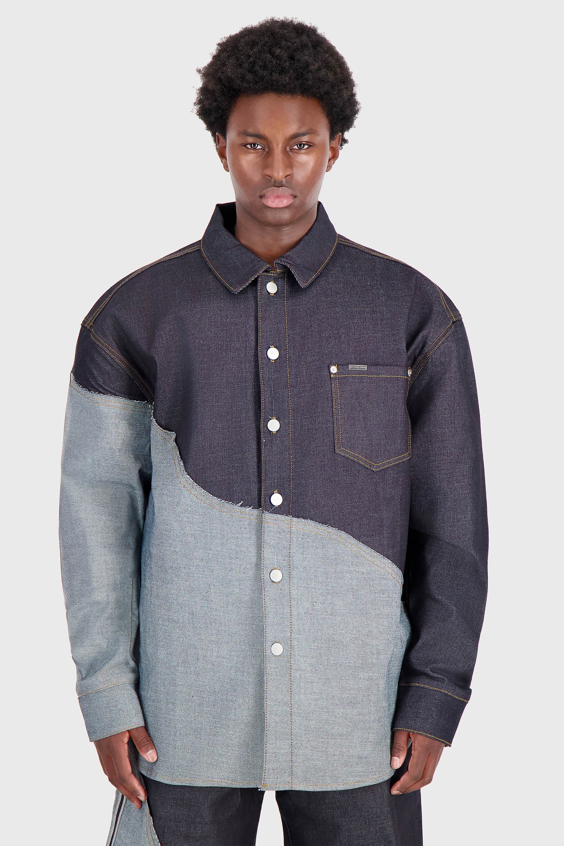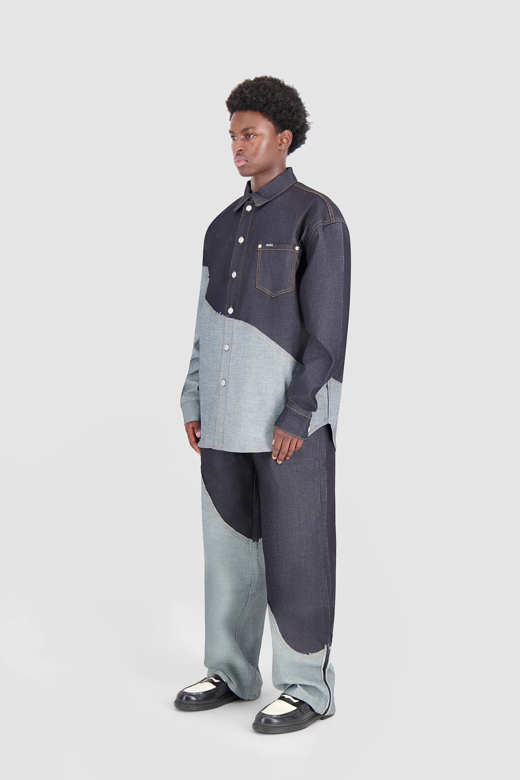Rhonwen supera i confini con pannelli rovesciati e asimmetria con bordi grezzi, dove le cuciture tradizionali sono destrutturate in linee architettoniche audaci. Abbinalo a Sarwin per completare il look