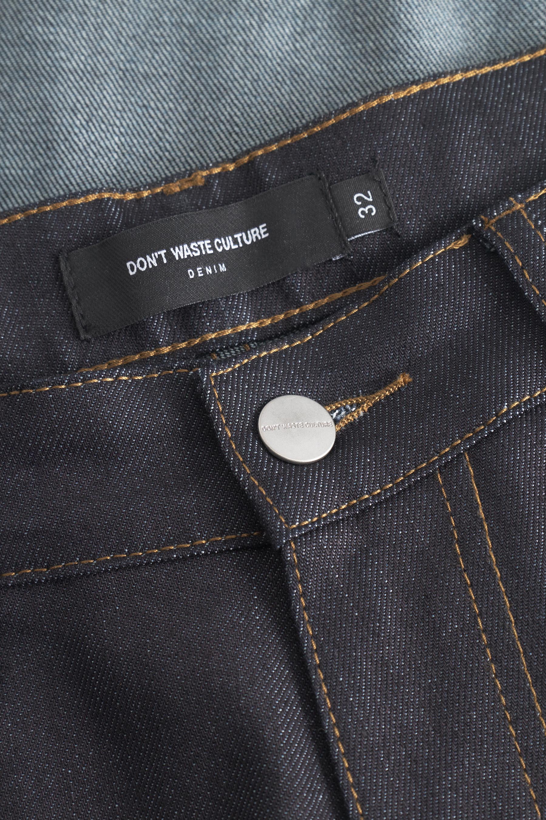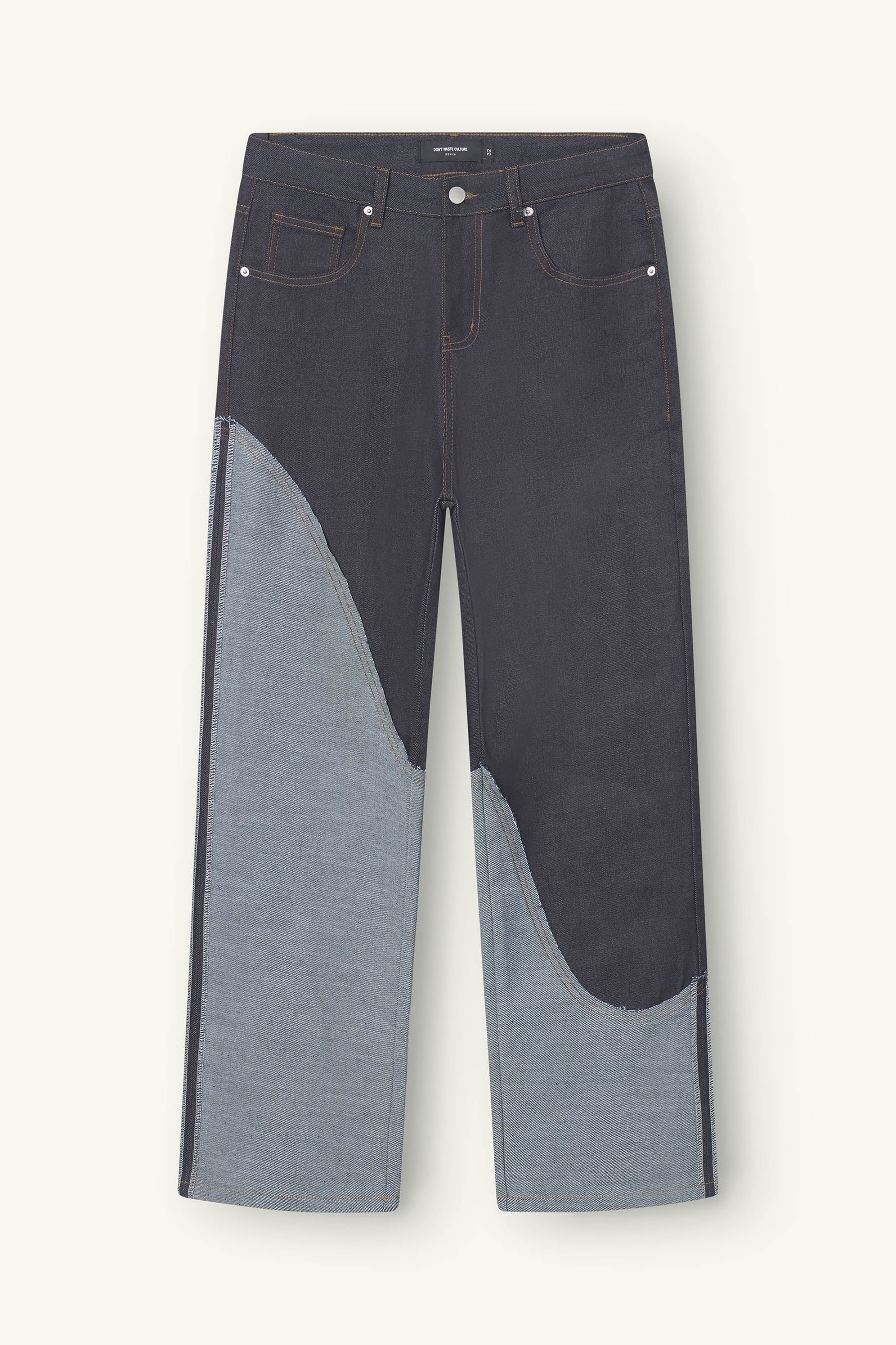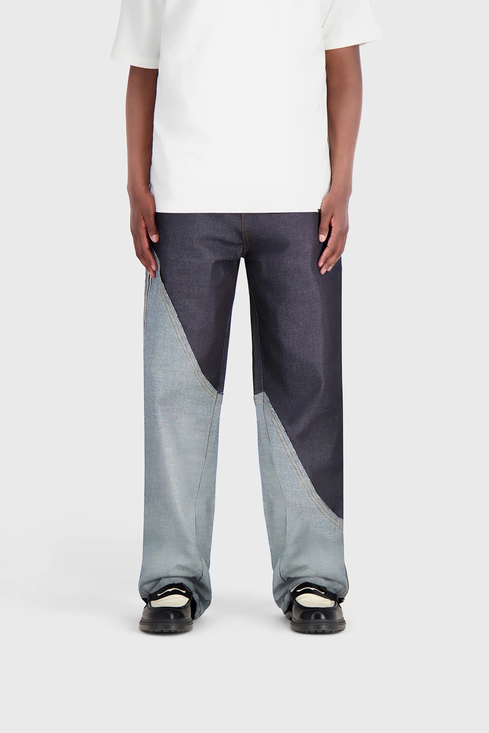 Realizzati in robusto denim 100% cotone, questi jeans fondono due elementi di design all'avanguardia: i pannelli "inside-out" ribaltati si uniscono a cuciture con bordi grezzi e angoli netti per un look artigianale destrutturato. Rifiniti con una classica silhouette a cinque tasche e vita media, i Sarwin sono progettati per distinguersi, specialmente se indossati insieme alla loro controparte, la sovracamicia Rhonwen, per un coordinato in denim dalla testa ai piedi.