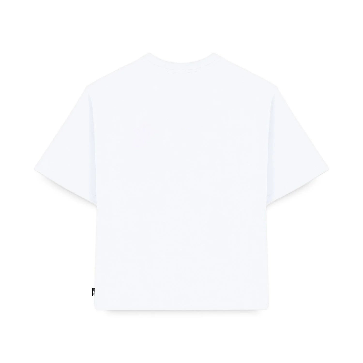 T-Shirt manica corta 100% cotoneBoxy FitStampa serigrafica frontaleEtichetta a bandieraCollo lavorato a costine
