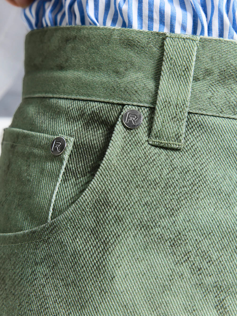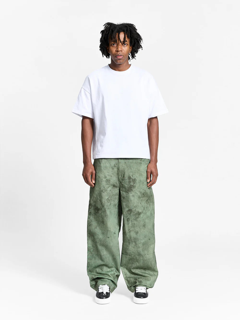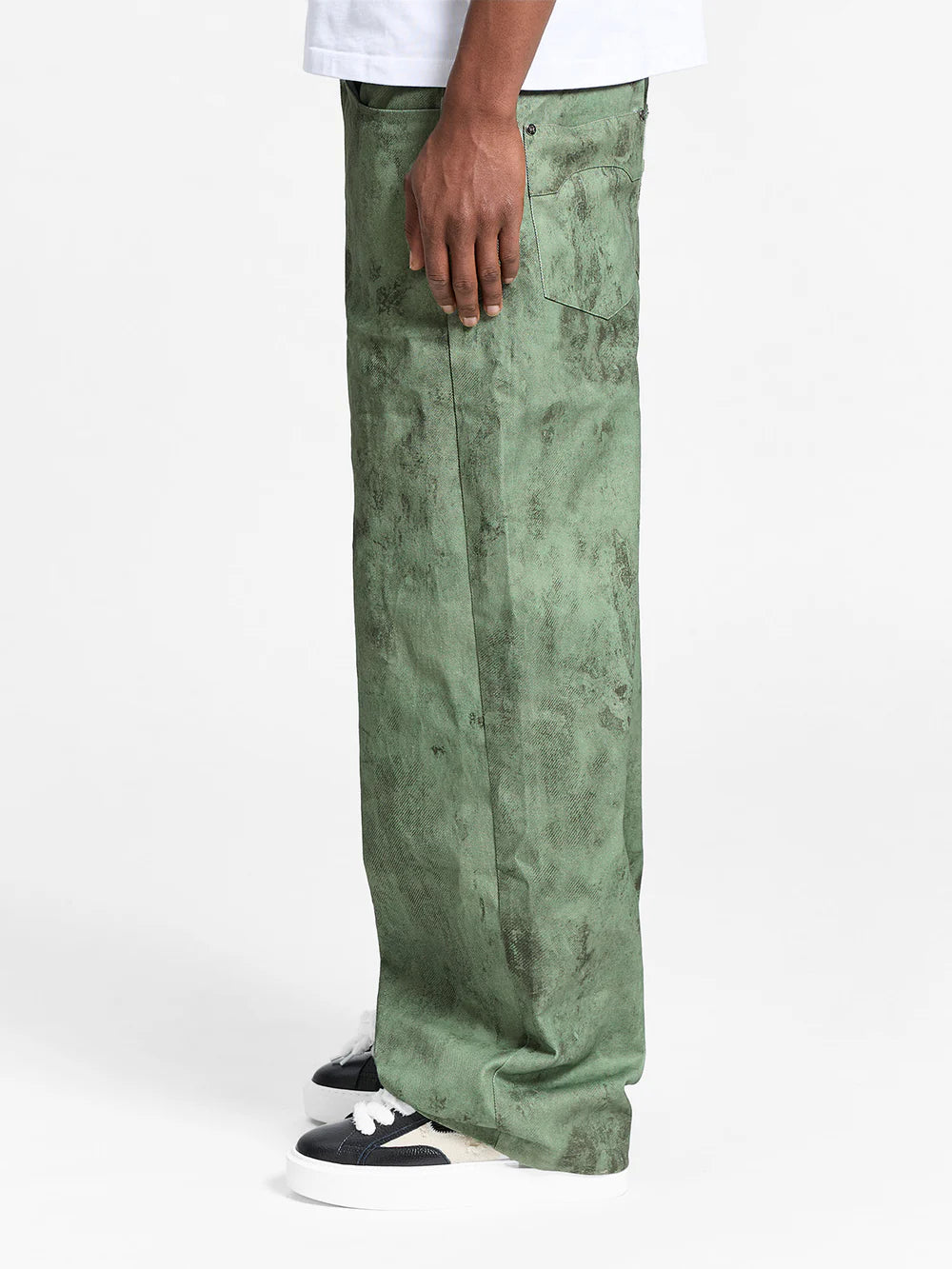 Il modello DÉLIRIA DENIM in verde è una reinterpretazione audace del classico denim attraverso la lente della creatività pura. Realizzato in cotone resistente con una silhouette ampia, il capo presenta l'esclusiva stampa DÉLIRIA su tutta la superficie, un'opera d'arte dipinta a mano trasferita direttamente sul tessuto, che conferisce a ogni paio un carattere espressivo e pittorico. Rifinito con una cerniera YKK e il nostro iconico gancio in metallo per un raffinato contrasto con il caos artistico.
