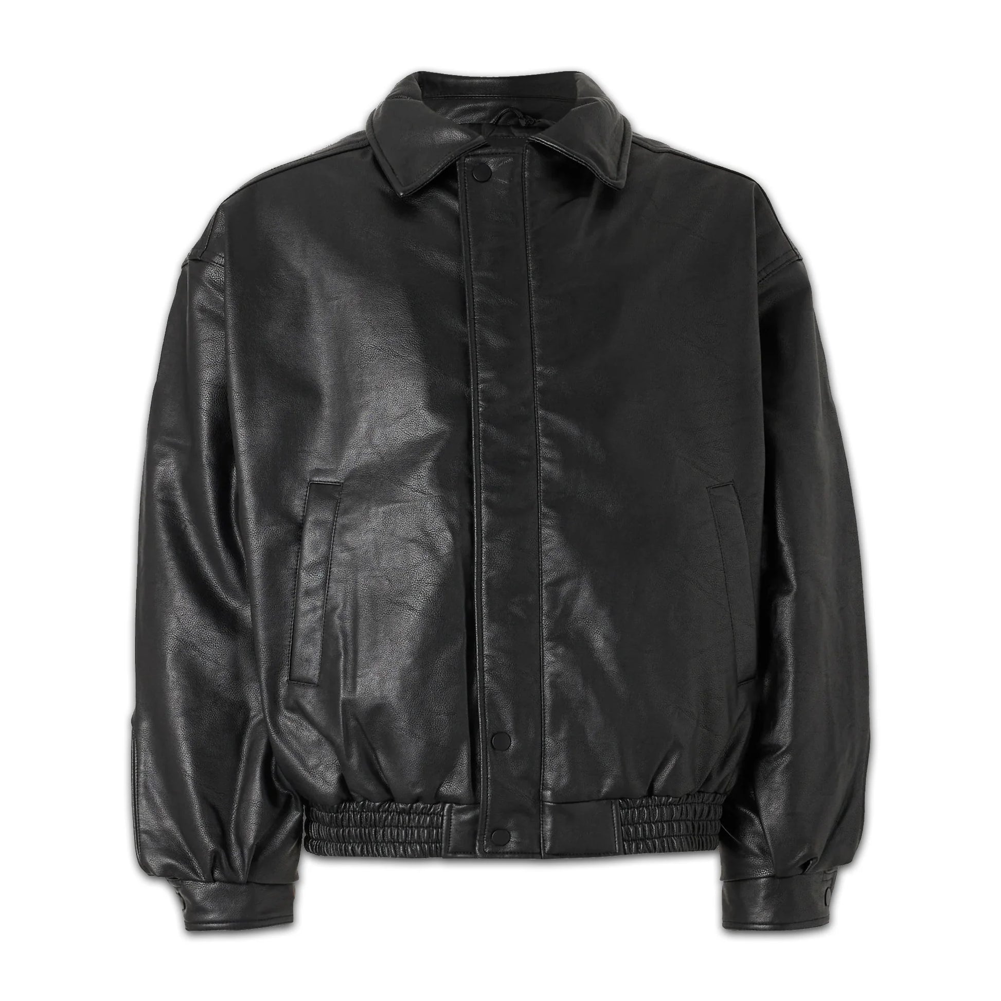 Giacca unisex in ecopelle bordeaux con logo goffrato sul retro. Due tasche laterali e una tasca interna. - Logo goffrato oversize sul retro - Due tasche laterali con marchio - Una tasca interna - Idrorepellente - 100% PU - Vestibilità unisex