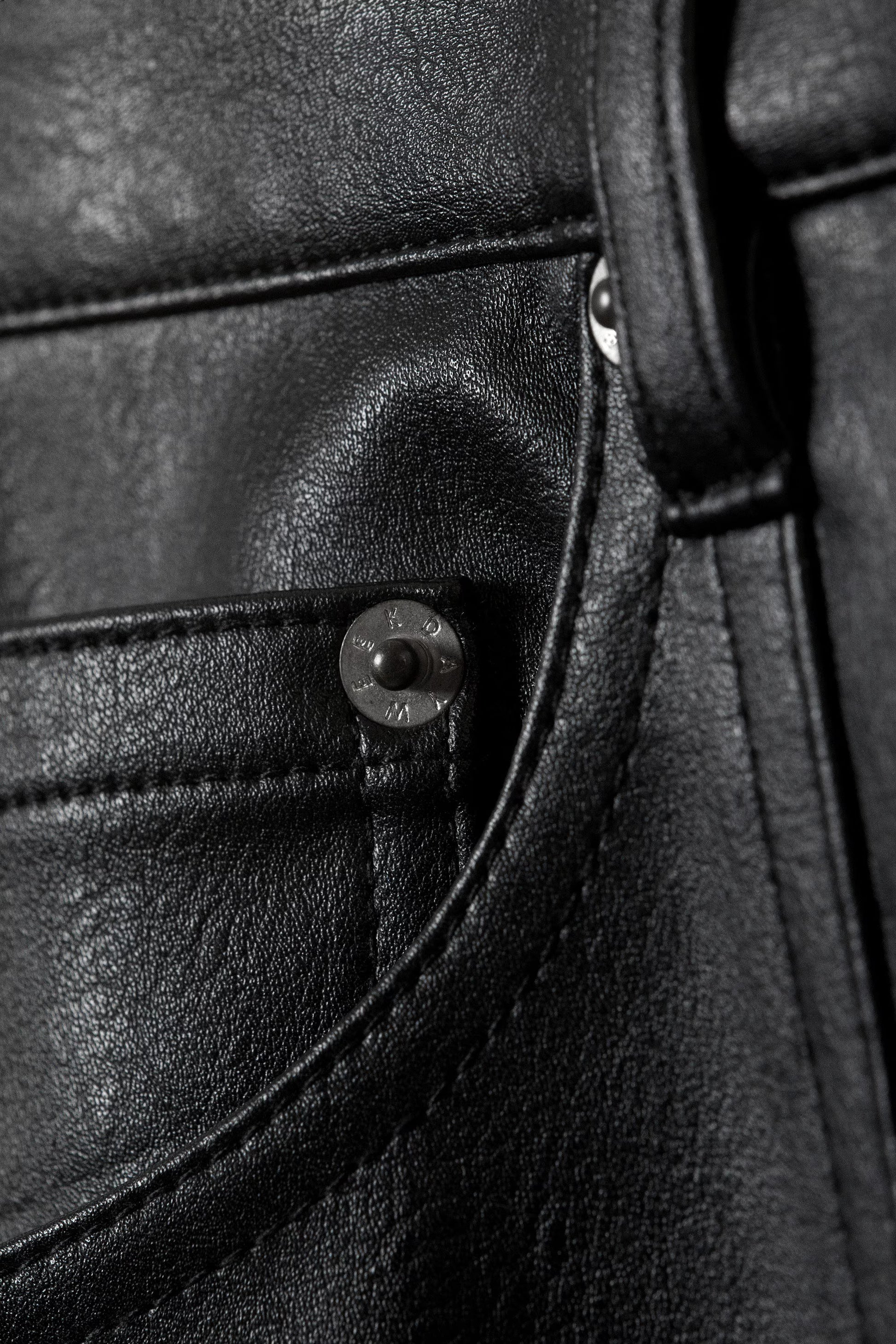 Pantaloni comodi con gamba dritta e orli con zip. Realizzati in morbida ecopelle, presentano cinque tasche, rivetti metallici e chiusura con zip. Sono una versione moderna dei nostri classici jeans Space.