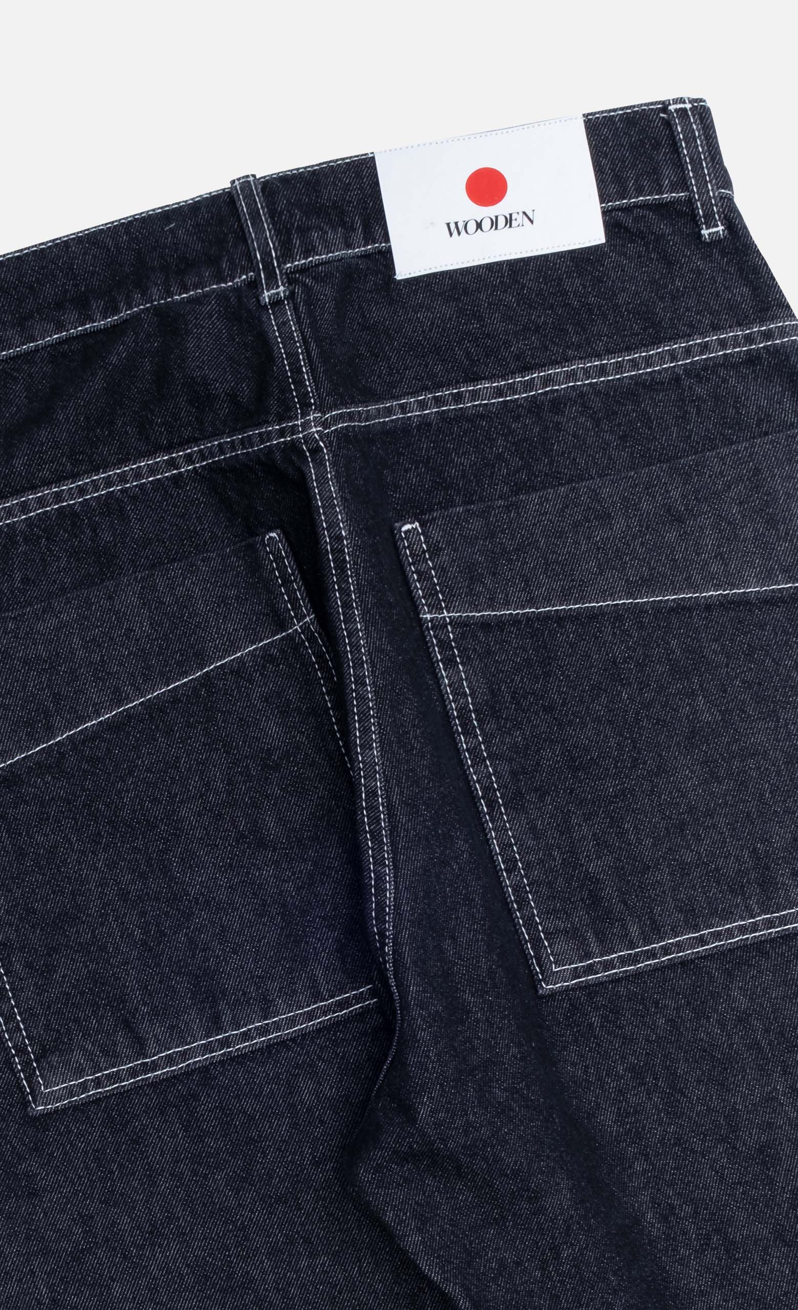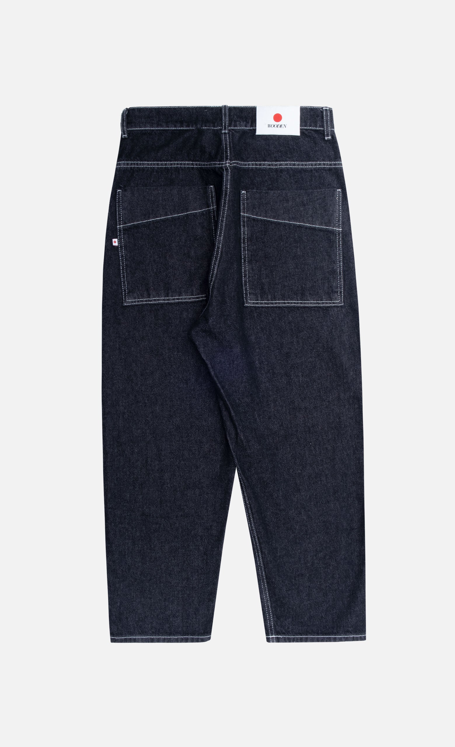 Cavallo pronunciato, lunghezza della gamba rivisitata per rendere “cropped” il pantalone e tasca posteriore quadrata di ispirazione japanese work jumpsuit.